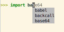 Shows menu of possible completions: do you want babel, backcall or base64.
